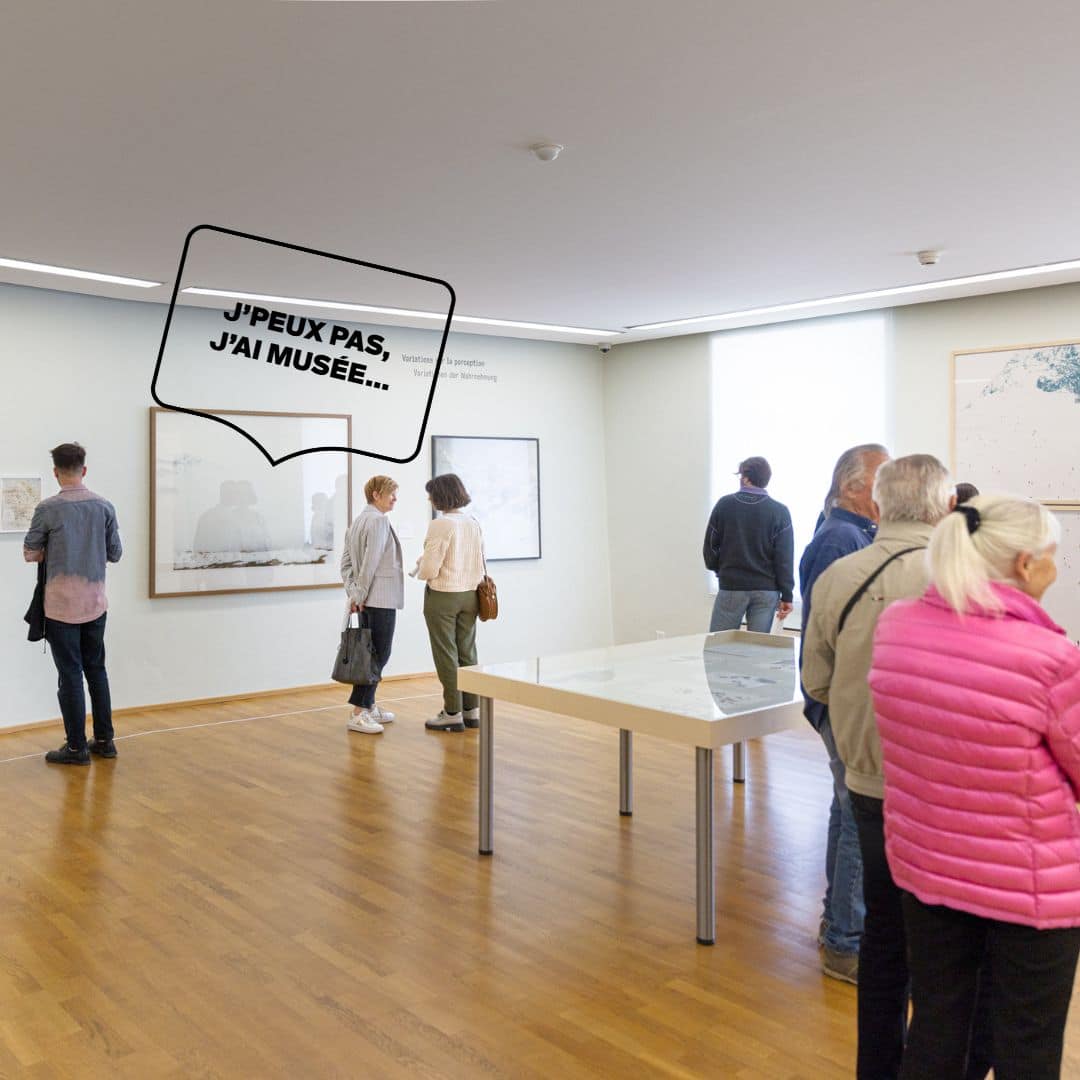 Choisissez un point de vue depuis l’une des terrasses du musée, puis traduisez-le en quelques formes, traits et couleurs avec du papier, des crayons, des ciseaux, de la colle et des super tampons encreurs « spécial Musée d’art du Valais ».